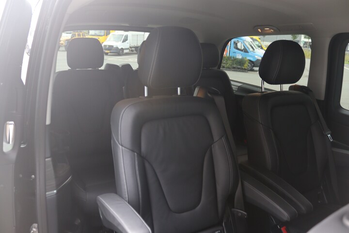 De EQV is o.a. voorzien van automatische airco voor- en achterin, distronic cruisecontrol (houdt zelf afstand), stoelverwarming en-ventilatie,10,25" MBUX multimediasysteem met navigatie, achteruitrijcamera, parkeersensoren voor en achter, cruise control ,stoelverwarming voorstoelen, 7 zitplaatsen, multifunctioneel lederen stuurwiel en elektrisch inklapbare buitenspiegels.