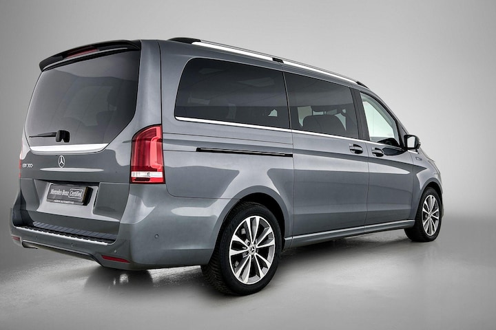 Technologische innovaties. Aantrekkelijke vormgeving. De Mercedes-Benz EQV verenigt het beste van twee werelden. Nooit meer naar de pomp! De elektromotor opladen en rijden maar! De auto is uitgerust met stijlvolle, lederen bekleding. Ga samen met je bijrijder lekker zitten in de verwarmbare voorstoelen. Relaxt rijden? Dan zijn de comfortstoelen een regelrechte extra. Een praktische extra is de elektrisch bedienbare achterklep die opent en sluit met een druk op de knop. Het interieur baadt in een zee van licht door het glazen panoramadak. Een prettige maar ook veilige extra is de schuifdeur voor passagiers. Ruim instappen, geen openslaande portieren die voor ongelukken zorgen... Een riante optie! Bij de zeer complete uitrusting van deze auto behoren ook 18 inch lichtmetalen velgen, LED koplampen, warmtewerend glas, dakspoiler, LED-achterlichten en verstelbare lendensteunen.