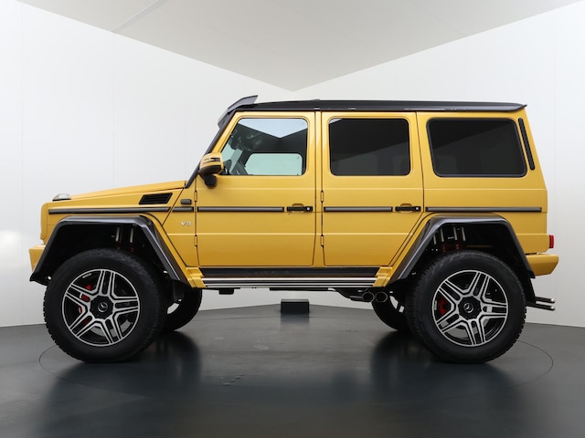Dat de G 500 4×4² bijzonder is, is bij het eerste aanzicht meteen duidelijk. De G-Klasse 4×4² heeft grotere wielen met offroadbanden, assen met een grotere uitslag, bredere wielkasten vervaardigd uit carbonfiber, en een grotere spoorbreedte. Daarmee heeft de G-Klasse in deze exclusieve 4x4-uitvoering terreincapaciteiten die geen enkele andere productieauto kan leveren. Maar ook op het asfalt rijdt de G 500 4×4² beter dan je zou verwachten. De V8 met dubbele turbo levert meer dan 400 pk en daarmee is er altijd meer dan genoeg kracht beschikbaar. Dit exemplaar is uitgevoerd in Solarbeam Yellow. Een zeer exclusieve lak, die nieuw een meerprijs heeft van meer dan 20.000 euro. Het interieur is in stijl afgewerkt in een combinatie van zwart nappaleder en alcantara met gele contrasterende stiksels. De concept van de G 500 4×4² introduceerde Mercedes-Benz als 'Extreme-G'. En dat is precies wat de productieversie ook is. Extreem in alle opzichten.
