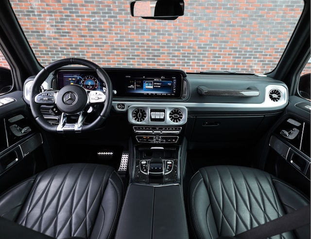 De uitstraling wordt extra kracht bijgezet door het uitgebreide AMG Nightpakket, de 22 inch matte zwarte AMG-gesmede velgen en de zwarte details die de imposante lijnen van de G-Klasse benadrukken. Binnenin wordt u omringd door ultieme luxe en geavanceerde technologie. Het Burmester 3D surround sound system, de 360° camera, het rijassistentiepakket Plus en ENERGIZING Comfort Control maken iedere rit niet alleen veiliger, maar ook aangenamer.