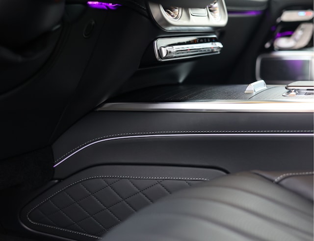 In het interieur vinden we prachtig zwart Nappaleder, openporig zwart houten interieurlijsten en prachtige diamantstiksels. De multicontourstoelen bieden optimaal comfort en zijn voorzien van verwarming, ventilatie en massagefuncties. Daarbij komt dat dit exemplaar is uitgerust met werkelijk alle opties. Denk bijvoorbeeld aan een glazen schuif-/kanteldak, Burmester audio en alle veiligheidssystemen. Er is nergens op bespaard voor deze G!