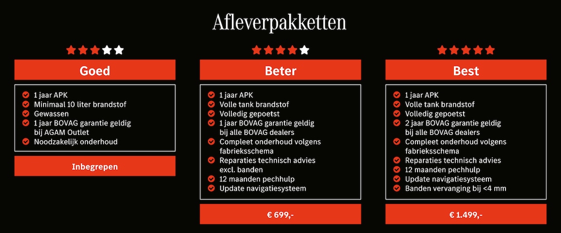 Dit afleverpakket bevat: BOVAG garantie (12 maanden); BOVAG 40-Puntencheck; BOVAG Afleverbeurt; Nieuwe APK; Geldige APK, RDW-leges, Wettelijke garantie