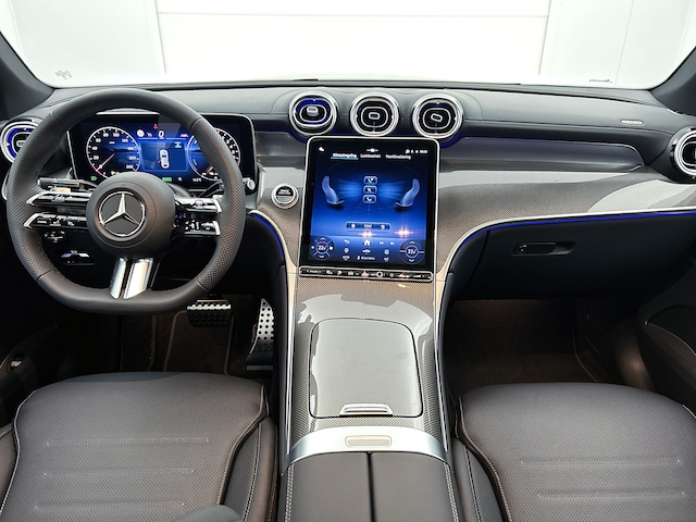Je merkt het aan de look and feel van deze auto: dit is kwaliteit. De Mercedes-Benz GLC Coupé is ontworpen volgens de Duitse opvattingen van kwaliteit en degelijkheid, maar biedt tegelijk een hoge mate van comfort en uitstekende rijkwaliteiten. Met de AMG Line Exterieur mag deze auto zeker gezien worden. Deze nieuwe auto is nu uit voorraad leverbaar. De aandrijving van deze Mercedes-Benz wordt verzorgd door een viercilinder motor en een automatische transmissie. We nemen je in gedachten even mee. Stop je bagage moeiteloos achterin dankzij de elektrisch bediende achterklep, neem plaats achter het stuur en zie meteen het luxe lederen interieur. Even het elektrisch bediende glazen panorama dak open en rijden maar! Zit je goed? De stoelen zijn eenvoudig instelbaar dankzij de elektrische bediening met geheugen. Pak aan, 't is winter! Zo'n verwarmd stuurwiel is dan bijzonder prettig! De slimme koplampen gebruiken de allernieuwste matrix LED-verlichting. Altijd maximaal zicht, nooit verblinding bij de tegenligger. Ook 20 inch lichtmetalen velgen, AMG Line Exterieur, warmtewerend glas, dynamisch onderstel, neerklapbare achterbank en aluminium treeplanken zijn aan boord.