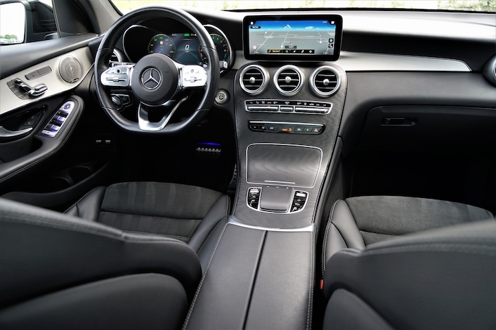 Origineel Nederlands geleverde (NAP) Mercedes GLC 300e 4MATIC hybride in de kleur 'Obsidiaanzwart Metallic' gecombineerd met een AMG- & Night-pakket. De auto is compleet Mercedes dealer onderhouden, heeft slecht één eigenaar gehad en is voorzien van origineel alarm klasse 3. Het betreft een BTW-auto, waardoor de BTW voor de zakelijke rijder is terug te vorderen. De GLC 300e heeft een gecombineerd vermogen van 320 pk en een elektrisch bereik van +/- 50 km. Deze Mercedes GLC is verder uiterst compleet uitgerust met o.a. de volgende lijst aan opties: