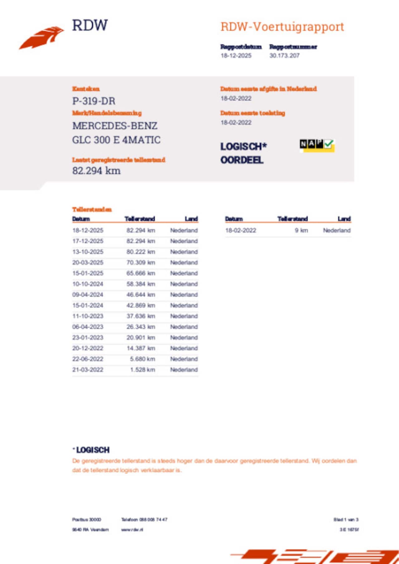 | Kilometerstand | 82.351 km |