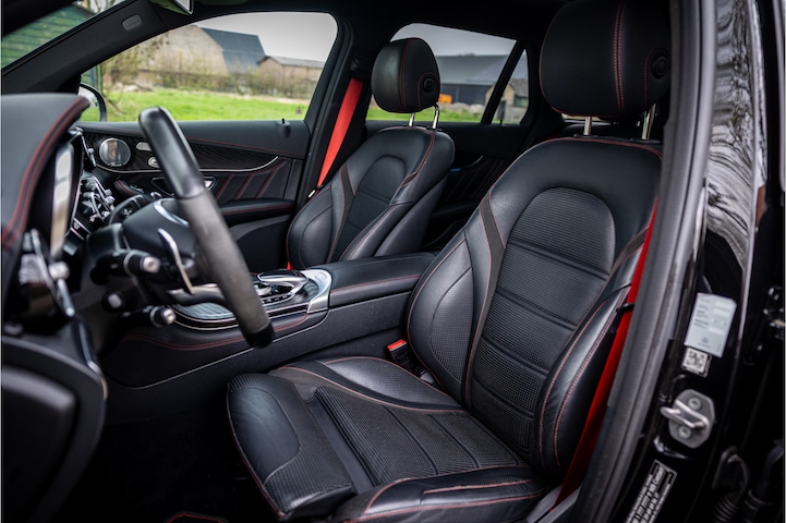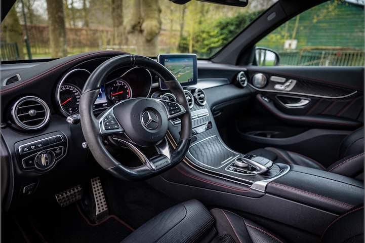 Fraaie en compleet uitgevoerde Mercedes GLC 43 AMG 4-Matic. De auto is in keurige conditie en heeft een ruime lijst aan opties. Lakkleur is Obsidian Black metallic en het interieur is voorzien van zwart leder met rode stiksels. De hemelbekleding is uitgevoerd in donker antraciet.