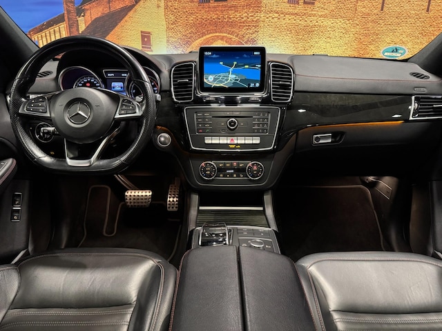 Gebouwd voor vele jaren rijplezier waarbij comfort en veiligheid op de eerste plaats staan, dat is deze typisch Duitse Mercedes-Benz GLE-klasse Coupé. Stijlvolle sportiviteit in uitstraling komt van de AMG-styling. De uitstekende prestaties van deze auto komen van de zescilinder motor en de automatische transmissie. Automatische luchtvering absorbeert oneffenheden in het wegdek en vergroot het rijcomfort. Wat de weg ook doet, deze 4x4 heeft elke ondergrond stevig te pakken dankzij de vierwielaandrijving. Van binnen zie je een lederen interieur, een stijlvolle uitvoering. Dankzij de elektrische stoelbediening is het gemakkelijk om de optimale zitpositie te vinden. Licht, luxe en gemak komen samen in de vorm van het elektrische bediende glazen panoramadak. De bagageruimte is toegankelijk via een comfortverhogende elektrische achterklep. Tot de uitrusting van deze Mercedes-Benz behoren ook 21 inch lichtmetalen velgen, LED koplampen, AMG-styling, warmtewerend glas, zwarte hemelbekleding en in delen neerklapbare achterbank.