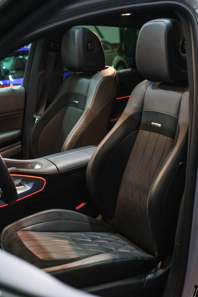 Wat deze GLE nog unieker maakt is de exclusieve bekleding, deze is voorzien van een ruitpatroon! Waar de meeste uitvoeringen het standaard lederen interieur hebben. Deze optie heeft fabriek-af een meerprijs van zo'n €2.900,-
