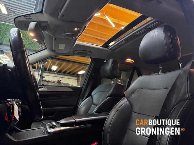 Deze M-klasse is zeer rijk uitgerust. Het zwart lederen interieur met elektrisch verstelbare en verwarmde voorstoelen zorgt voor hoog comfort. Het interieur wordt verder verfraaid met aluminium sierdelen en een uitgebreid interieurverlichtingspakket. Het elektrisch glazen schuifdak, de automatische achterklep en het donker getinte glas verhogen het luxe karakter.