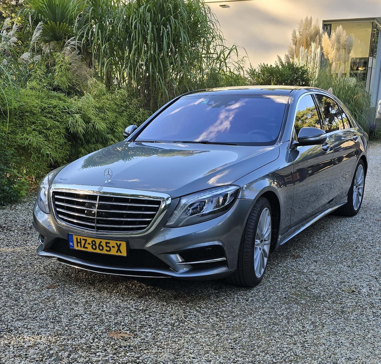 Mercedes-Benz S-klasse - 500 4Matic Lang Prestige Plus , AMG Sports- en Styling Pluspakket, 9G-Tronic, Antraciet(Selenit) metallic, Bruin softl