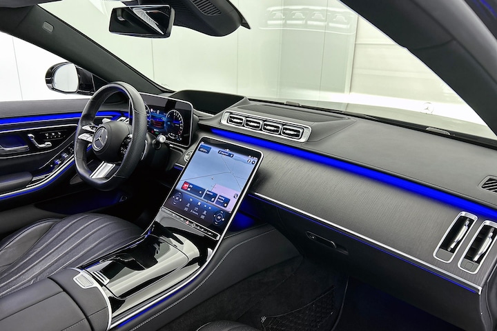 Een occasion om van te dromen. Deze Mercedes-Benz S-klasse brengt behalve een pittige motor en een vriendelijke kilometerstand ook de nodige extra's mee. Mag het een beetje exclusief en sportief? Mooi, want deze is uitgevoerd met AMG-styling. Elektrisch rijden of liever benzine? Kiezen hoeft niet, want de hybride motor maakt het allebei mogelijk. Niks mis met gewone stalen vering natuurlijk, maar de luchtvering in deze auto geeft toch wel een paar onderscheidende extra's als het gaat om veiligheid, gemak en wegligging. Stijl en comfort krijg je erbij in de vorm van een fraai lederen interieur. Dankzij de elektrische stoelbediening is het gemakkelijk om de optimale zitpositie te vinden. Het interieur glanst in daglicht door het elektrisch bedienbare panoramadak. Vergeet halogeen; deze koplampen gebruiken de allernieuwste matrix LED-technologie met maximale lichtopbrengst zonder de tegenligger te hinderen. Natuurlijk behoren 21 inch lichtmetalen velgen, AMG-styling, adaptief dempingsysteem, warmtewerend glas, zwarte hemelbekleding en LED-achterlichten ook tot de uitrusting van deze complete auto.