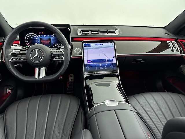 Met een auto als deze Mercedes-Benz S-klasse kom jij absoluut goed voor de dag. Deze auto uit 2025 heeft 17639 kilometer gereden. De elegante lijnvoering wordt versterkt door subtiele AMG-styling details. Deze Mercedes-Benz S-klasse heeft een hybride motor, dus een combi van brandstof en elektrisch. Een slim en milieuvriendelijk systeem dat ook nog eens lekker kostenbesparend is. Daglicht valt ongehinderd naar binnen via het elektrisch bediend glazen panorama dak en laat het lederen interieur mooi tot zijn recht komen. Comfort of luxe? Wij denken allebei! Op koude en donkere dagen zijn de verwarmbare voorstoelen een uitkomst. En ze hebben een massagefunctie bovendien. Dankzij de elektrische stoelbediening is het gemakkelijk om de optimale zitpositie te vinden. Ribbels en hobbels in de weg worden royaal gladgestreken door de aanwezige luchtvering. Laat de koude dagen maar komen. Bij jou zitten ze zelfs achterin goed, dankzij de verwarmde achterbank. De matrix LED-verlichting in de koplampen bestaat uit een raster van lichtpunten met maximale opbrengst. Bij tegenliggers past het systeem precies die punten aan die hinderlijk kunnen zijn. Je behoudt maximaal zicht! Verder is de Mercedes-Benz uitgerust met: elektrische zonnerollo voor de achterruit, 20 inch lichtmetalen velgen, AMG-styling, adaptief dempingsysteem, warmtewerend glas en LED-achterlichten.