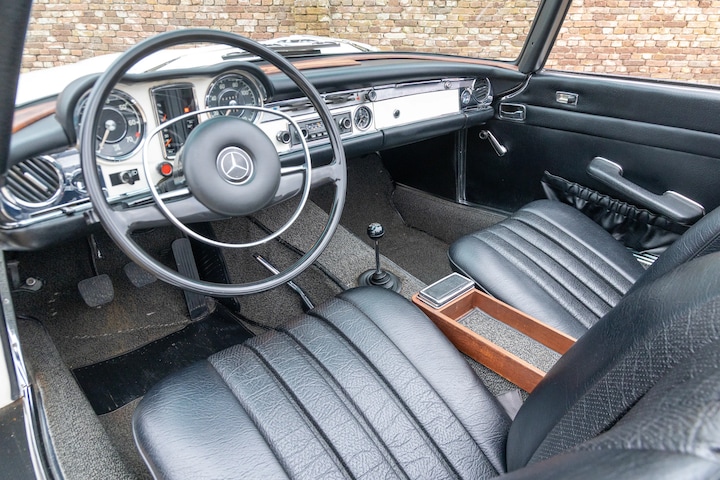 Dit specifieke exemplaar is een 280 SL uit 1970 en onderging uitgebreide restauratie- en revisiewerkzaamheden en staat er dan ook schitterend bij. De lak heeft een prachtige glans en is van zeer goede kwaliteit. De passingen van de carrosseriedelen zijn mooi en de chromen onderdelen zijn zeer netjes en van goede kwaliteit. Bij dit niveau van restaureren mag u dit uiteraard ook verwachten. De onderzijde van deze Mercedes is schitterend, bekijkt u ook eens de foto’s op onze website.