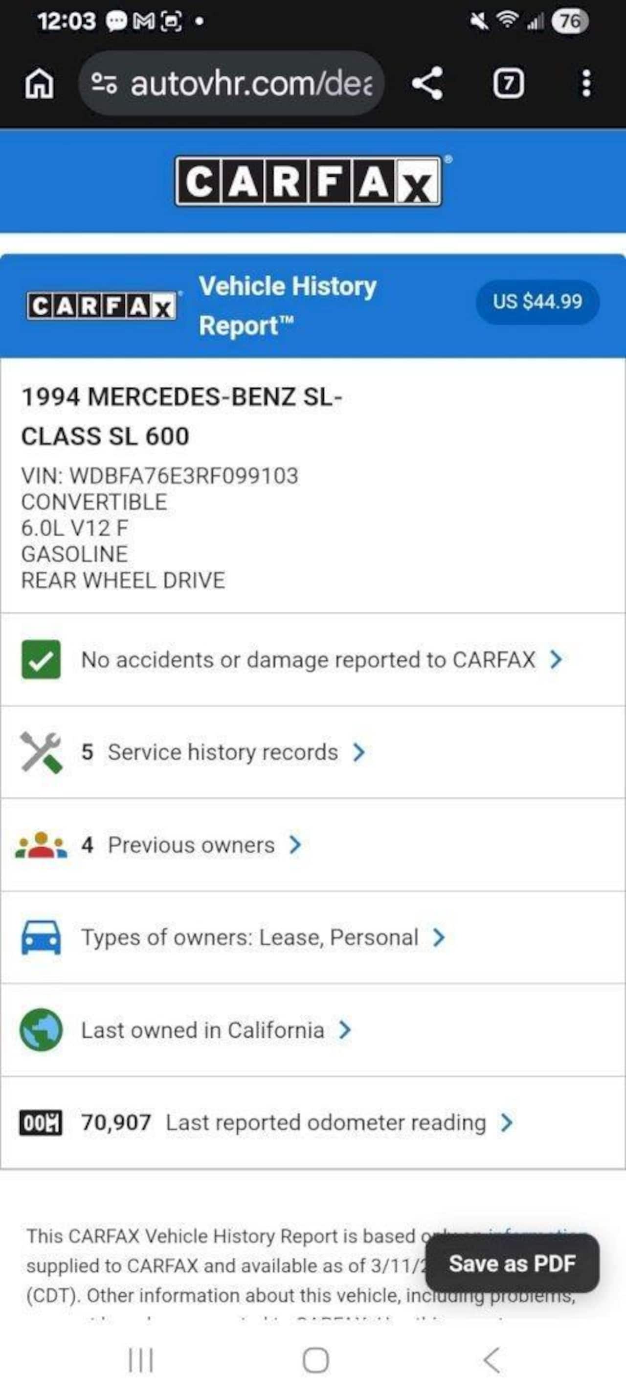 Mercedes-Benz SL-klasse Cabrio - 600 W129076