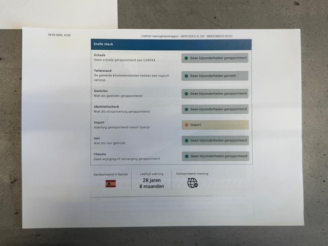 Deze R129 SL werd in juli 1997 nieuw geleverd in Italië door de Mercedes Benz dealer te San Martino Siccomario waar hij slechts kortstondig heeft doorgebracht. Toen de auto nog geen twee jaar oud was werd hij aangekocht bij een Duitse Mercedes Benz dealer uit de omgeving van Bruschal. De eigenaar daarna nam de auto mee in de koers van Spanje ¨Marbella¨ waar de auto sinds voorjaar 2004 verbleef. Ruim twee jaar later werd de auto verkocht aan een Spaanse eigenaar uit omgeving Malaga. Zijn bezit hield langdurig aan en de km-stand liep slechts gestaag op. Uiteindelijk werd deze SL aangeschaft door de laatste Nederlandse eigenaar van zijn destijds Spaanse vriend & buurman. Zo kwam de auto bij verkoop van zijn vakantie woning als huisraad mee naar Nederland in 2021 en werd de SL voorzien van Nederlandse registratie. De kilometerstand is geheel aantoonbaar en naast het originele serviceboekje met een groot aantal service stempels is er een Carfax en Nationale Auto Pas present. Tevens is er een ordner aanwezig van het onderhoud van de laatste jaren uit Spanje en Nederlands present (deels Mercedes dealer en deels specialist). De huidige kilometerstand is 117241km. Wat het algehele plaatje rond deze SL mede extra interessant maakt. Wij leveren deze SL aan u af inclusief check up , nieuwe apk en servicebeurt.