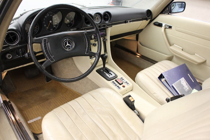 Nette en goed rijdende 450SLC, map met alle facturen van onderhoud enz. zijn aanwezig, de auto is ook voorzien van een gas installatie! Voor de Amerikaanse markt waren de uitlaatgasnormen strenger en er waren diverse maatregelen genomen om aan de eisen te voldoen, dit resulteerde echter in minder vermogen 195 pk (5500 rpm) en minder koppel 275 Nm (4000 rpm). Om dit te compenseren was er voor de Amerikaanse markt al een 4.5 liter V8 ontwikkeld, deze leverde 217 pk bij 5000 rpm en 360 Nm bij 3250 rpm. De eerste W107-modellen die met deze motor werden geleverd hadden een type plaatje 350SL(C) 4.5 maar vanaf november 1972 werd de officiële benaming 450SL en 450SLC. Vanwege het grote koppel van de motor werd deze standaard voorzien van een automatische transmissie en een handgeschakelde bak was niet leverbaar. In Europa werd de 450SL(C) pas in 1973 geïntroduceerd en de motor leverde hier 225 pk (5000 rpm) en 378 Nm (3000 rpm).