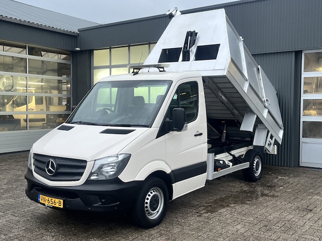 Een zeer nette Mercedes Sprinter 310 2.2 366 rechts gestuurd Kipper met Kliko Vuilniswagen systeem Vuilnis pers Airco 3-Persoons Pick-up Kieper 1e eigenaar Hoge schotten Boomverzorging Snoeiaval veegvuilkipper veegvuil kipper