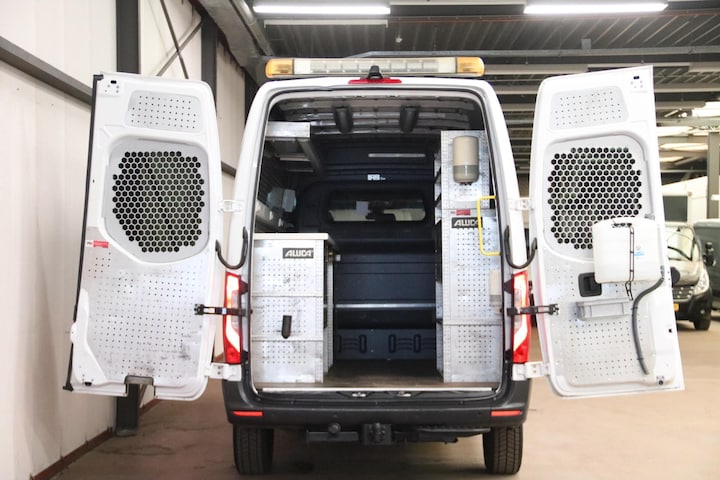 De Mercedes-Benz bestelbus is voorzien van 164PK L2H2 MET 3500KG TREKVERMOGEN, trekhaak, werkplaatsinrichting, navigatiesysteem en achteruitrijcamera.