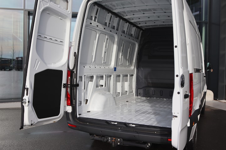 De Sprinter is o.a. voorzien van airco, MBUX multimediasysteem met navigatie, Apple CarPlay en Android Auto, cruise control, achteruitrijcamera, trekhaak met 3.500 kg trekgewicht, comfort bestuurdersstoel etc.