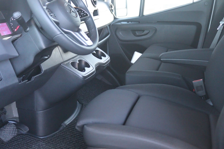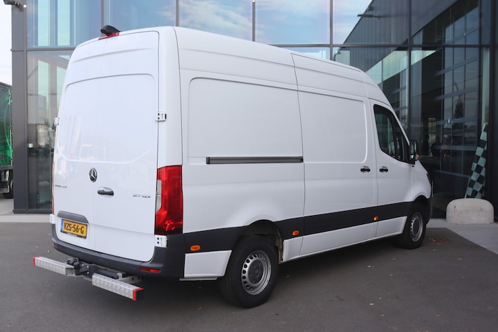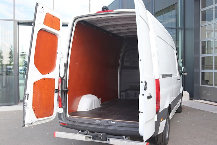 De Sprinter is o.a. voorzien van airco, cruise control, 9G-tronic automaat, 7" MBUX multimediasysteem met Apple CarPlay en Android Auto, navigatie, achteruitrijcamera, parkeersensoren voor en achter, volledige laadruimte betimmering en trekhaak met 3.500 kg trekgewicht.