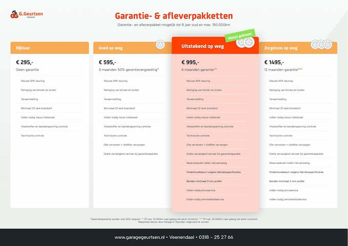 Dit afleverpakket bevat (in plaats van afleverpakket "Basis"): 6 maanden garantie (6 maanden garantie); Nieuwe APK