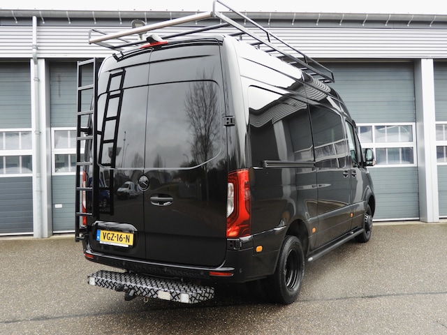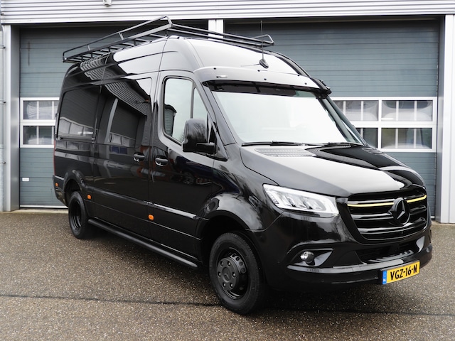 Uniek uitgevoerde Mercedes-Benz Sprinter 319 3.0 V6 190PK L2H2 met 5-persoons dubbel cabine! Stootlijsten, spiegels, grill en bumpers in kleur, zonneklep met ledverlichting, sidebars, twee geveerde stoelen, lederen bekleding, electrische schuifdeur en VANstep opstap met 3.500 kg. trekgewicht!