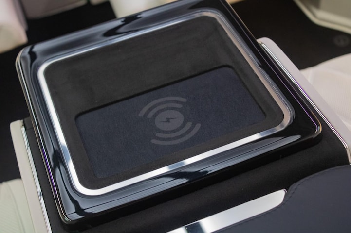Vier ergonomische Mercedes captain seats — waarvan twee met beenondersteuning — bieden eersteklas comfort. Verwarming, koeling en drie massageprogramma’s zorgen dat elke rit ontspannend is. Elektrisch uitschuifbare tafels, een geïntegreerde Nespresso-bar en een whiskybar maken het interieur compleet functioneel en volledig modulair. Alles is te bedienen via de persoonlijke bedieningselementen of via iPad.