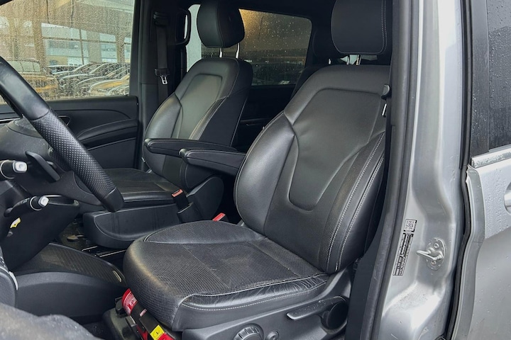 Een klassebak is wat oneerbiedig om te zeggen over deze Mercedes. Het merk noemt het zelf 'The best or nothing', en dat klinkt al een stuk beter. Maar wat je ook zegt, dit is absoluut een voortreffelijke auto in alle opzichten. De uitstekende prestaties van deze auto komen van de viercilinder motor en de automatische transmissie. Het interieur ademt luxe door de leren bekleding. 's Winters op pad gaan kan een behoorlijke uitdaging zijn. Daarom is deze Mercedes-Benz V-klasse voorzien van weldadige verwarmbare voorstoelen. Neem plaats achter het stuur en ervaar de weldaad van de comfortstoelen. De achterklep opent automatisch met een druk op de knop. Handig als u met volle handen staat. Parkeerschade door openslaande deuren is er niet bij. De schuifdeur wordt dicht langs de zijkant geleid en uitstappen gaat supergemakkelijk. Ook 17 inch lichtmetalen velgen, LED koplampen, sportonderstel en warmtewerend glas horen tot de voorzieningen op deze auto.
