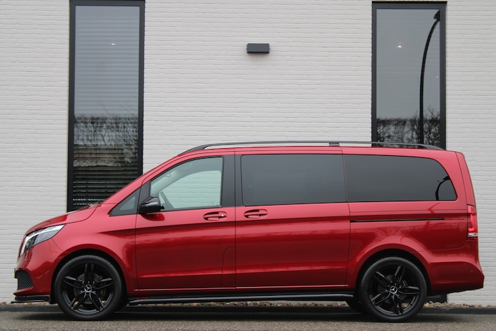 Neem plaats in de cockpit, start de motor en voel het vermogen. Met deze sportieve Mercedes-Benz V-klasse hebt u altijd de controle. De krachtige motor geeft deze Mercedes-Benz uitstekende prestaties. Terwijl u de bagage inlaadt via de elektrisch bedienbare achterklep, nemen uw passagiers al plaats in het lederen interieur. Mooi! De R in de maand? Dan is het tijd voor de luxe van de meegeleverde stoelverwarming! Onderweg heeft u extra veel te zien dankzij het glazen panoramadak. Met de krachtige xenonverlichting heeft u optimaal zicht in het donker. Aan alles is gedacht als het gaat om de combinatie gemak en veiligheid. Bijvoorbeeld het in- en uitstappen via de schuifdeur met z'n ruime opening. In deze auto profiteert u onder andere ook van: LED koplampen, sportonderstel, adaptief dempingsysteem, warmtewerend glas, LED-achterlichten en verwarmde ruitensproeiers.