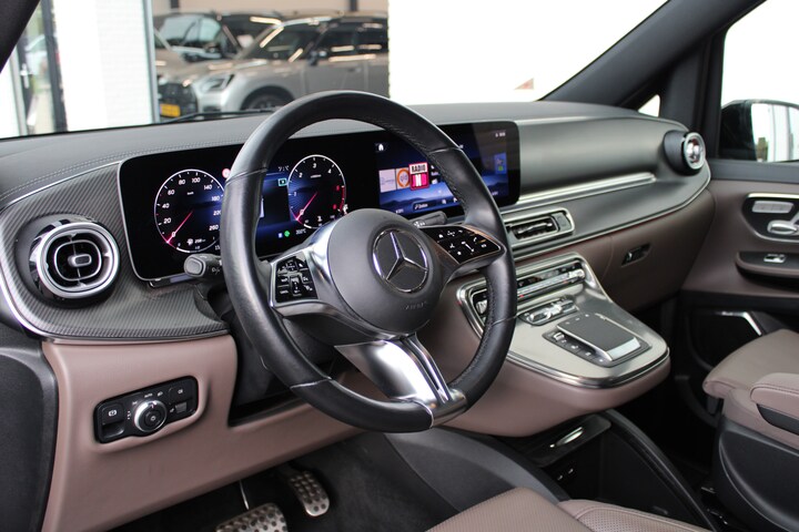 Dynamische styling, zorgvuldig afgewerkt met fraaie materialen en ontworpen met oog voor detail. De Mercedes-Benz V-klasse is van binnen en van buiten een toonbeeld van Duits design. Fan van AMG-sportpakket? Dat komt mooi uit, want deze is lekker sportief uitgevoerd. Met zijn dieselmotor en automatische transmissie is dit een prima auto voor nog vele kilometers. Op ieder wegdek een rimpelloze wegligging: dat is het voordeel van luchtvering. De auto is voorzien van een mooie en comfortabele lederen bekleding. U past de stoelen moeiteloos aan, ze zijn elektrisch in te stellen en hebben bovendien een geheugen. Met een druk op de knop gaat de elektrische achterklep open. Comfortabel houvast krijgt u van het verwarmd stuurwiel. In het donker zorgt de xenonverlichting voor een goed zicht op de weg. Bij de uitrusting van deze auto horen onder meer 19 inch lichtmetalen velgen, LED koplampen, AMG-sportpakket, elektrisch bedienbare schuifdeuren, sportonderstel en adaptief dempingsysteem.