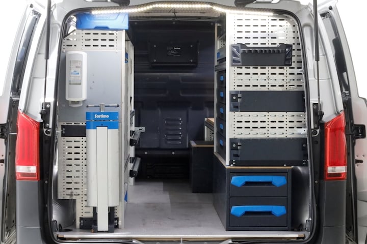 Deze 136pk sterke Vito 114 CDI is van 06-2022! Compacte en wendbare L1H1, direct inzetbaar vanwege reeds gemonteerde inrichting.