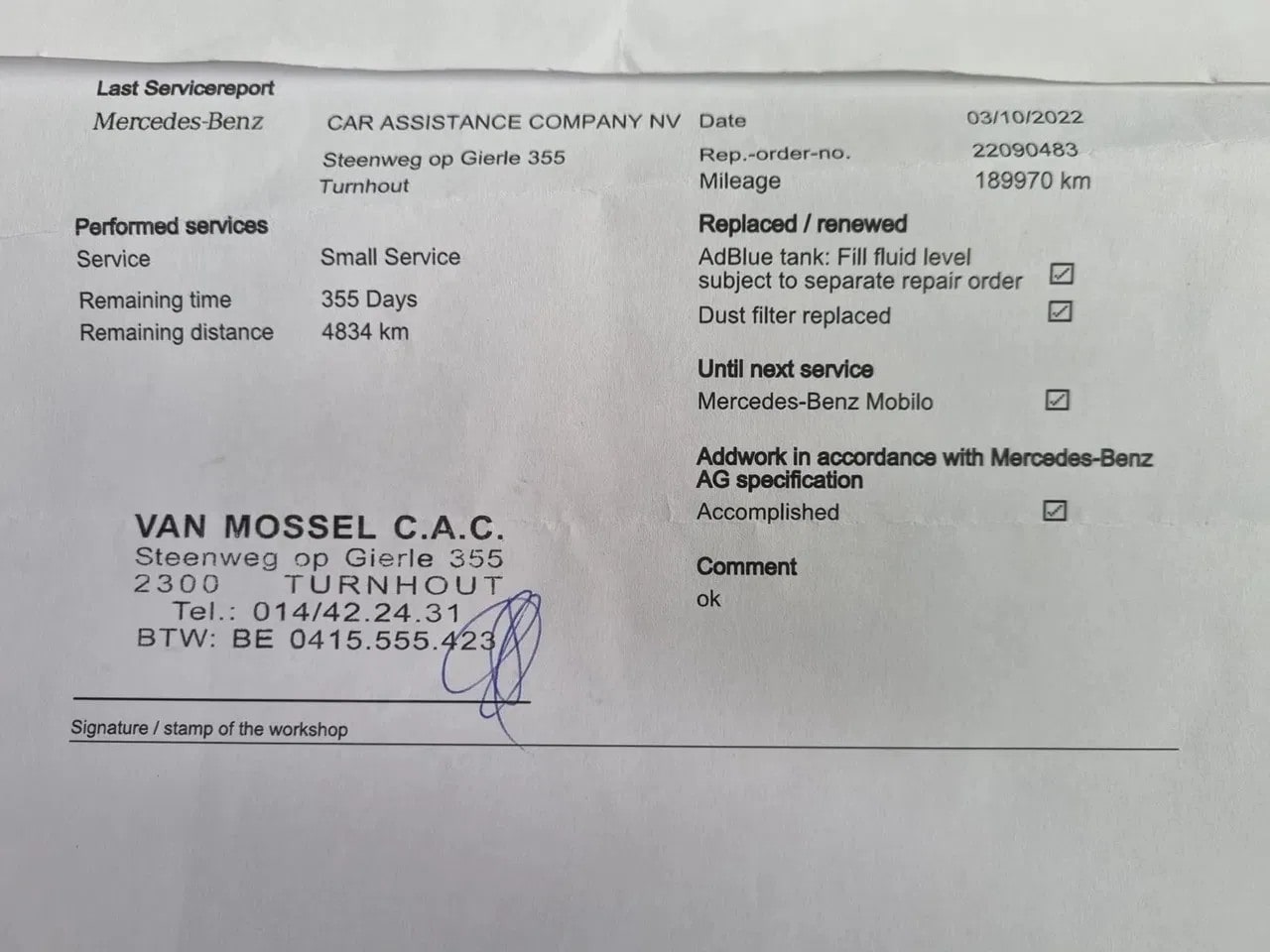 | APK | Bij aflevering |