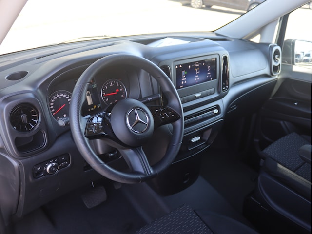 De Vito is o.a. voorzien van airco, 10,25" MBUX multimediasysteem met Apple CarPlay en Android Auto, achteruitrijcamera, cruise control, trekhaak met 2.500 kg trekgewicht, alarm en laadruimte betimmering.