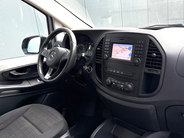 Deze Mercedes is in Juli 2016 geleverd en heeft 152.550km ervaring. Binnen beschik je over o.a; navigatiesysteem, airco, schakelflippers, cruise control, bluetooth, multifunctioneel stuurwiel, achteruitrijcamera, parkeersensoren voor & achter, comfortstoelen, etc.. Deze Vito is daarnaast voorzien LED Intelligent Light System, 18” LMV en een trekhaak voor 2500kg trekgewicht. De laadruimte is voorzien van een uitneembare rubberen mat. Daaronder bevind zich een vloer in mooie staat.