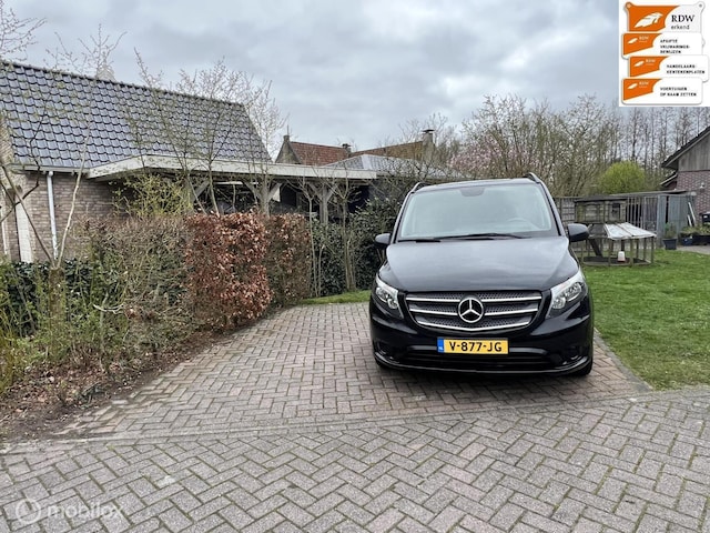 Nette Mercedes Vito 114 CDI Lang Business Ambition Aut. 2017. Met Climat control, Cruise control, Lederen bekleding, Navigatiesysteem, Audio, Boordcomputer, Achteruitrijcamera, Sportvelgen, Parkeersensoren voor+achter, Trekhaak 2500kg!, Schuifdeur rechts, Elek.ramen en spiegels. Multifunctioneel stuur met schakelpaddels, Nwe apk.