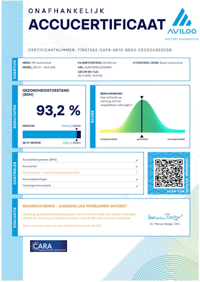 Accu: 45 kWh, Conditie: 93%