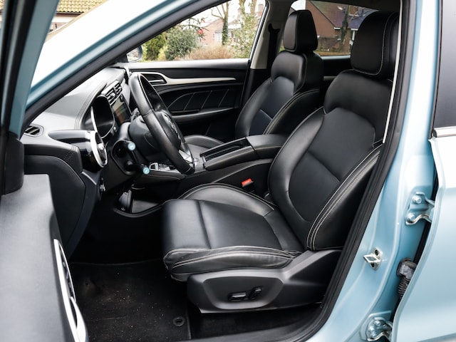 Kijk naar de onvergelijkbare vormgeving. De MG MG ZS is een elektrische auto die zijn bijzondere karakter niet voor de buitenwereld verbergt. Gas geven is er met de elektromotor niet meer bij. Stil snelheid maken wel! Houdt u van een stijlvolle uitvoering? Dan zal het lederen interieur u zeker bevallen. De verwarmbare voorstoelen benadrukken nog maar eens dat we hier te maken hebben met een regelrechte verwenauto voor bestuurder en bijrijder. Het elektrisch bediende panoramadak zorgt voor maximale lichtinval en frisse lucht in het interieur. Natuurlijk behoren 17 inch lichtmetalen velgen, LED-dagrijverlichting en donker getint glas achter ook tot de uitrusting van deze complete auto.