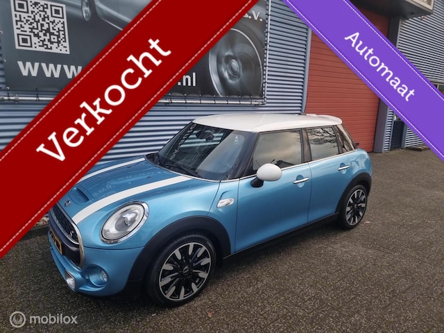 Mini Mini 2.0 Cooper S Chili Serious Business Automaat 192pk. 5-deurs, Zeldzame electric-blue metallic kleur, Full LED koplampen, Vol leder sportstoelen met stoelverwarming, ECC klimaatcontrol, Cruise-control, 17inch LM velgen, Parkeersensoren, Navigatie, Ambiance interieur sfeerverlichting, Wit dak, Chrome instaplijsten, Keyless start, Isofix, Dimmende binnenspiegel, Regensensor, Lichtsensor, Zwarte hemelbekleding, Schakelflippers aan stuurwiel, Instelbaar onderstel / motorvermogen / uitlaatsound, Elektr.ramen en spiegels, Bluetooth telefoon, Bluetooth streamen, enz.enz. Deze Mini staat al rijklaar. Is net voorzien van onderhoudsbeurt, en hij word vooraf aflevering voorzien van nieuwe APK.