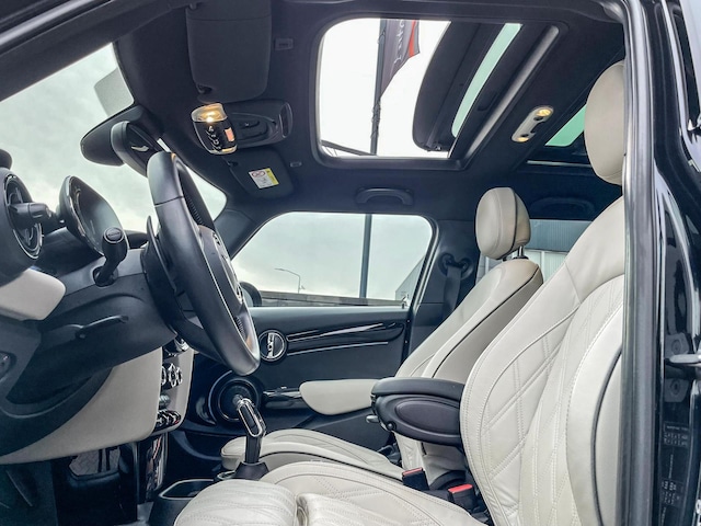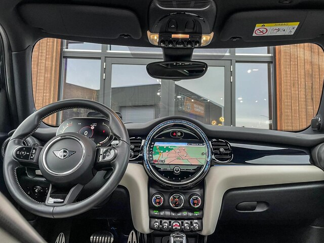 Unieke Mini Cooper S John Cooper Works 5drs F1 sportautomaat uitgevoerd in de prachtige kleurencombinatie van Enigmatic black metallic metallic en Chester Satellite grey lederen interieur. Deze in werkelijk nieuwstaat verkerende Mini is dealer onderhouden en uitgerust met vele opties o.a.:Climate control,vollederen interieur Chester satellite grey,sportstoelen,stoelverwarming,virtual cockpit,breedbeeld navigatie,Mini connected XL,head up display,achteruitrijcamera,adaptieve cruise control,elektrisch bedienbare glazen panoramadak,Jcw sportpakket,led verlichting,elektrische ramen+spiegels,lederen Jcw sportstuur met F1 flippers,full black pack,regensensor,17” Jcw velgen zwart,donker dakhemel,parkeersensoren voor en achter,parkassist(Mini parkeert zelf in),Apple CarPlay,keyless go,55.000km origineel.Schitterende Mini in topstaat voor de echte liefhebber.