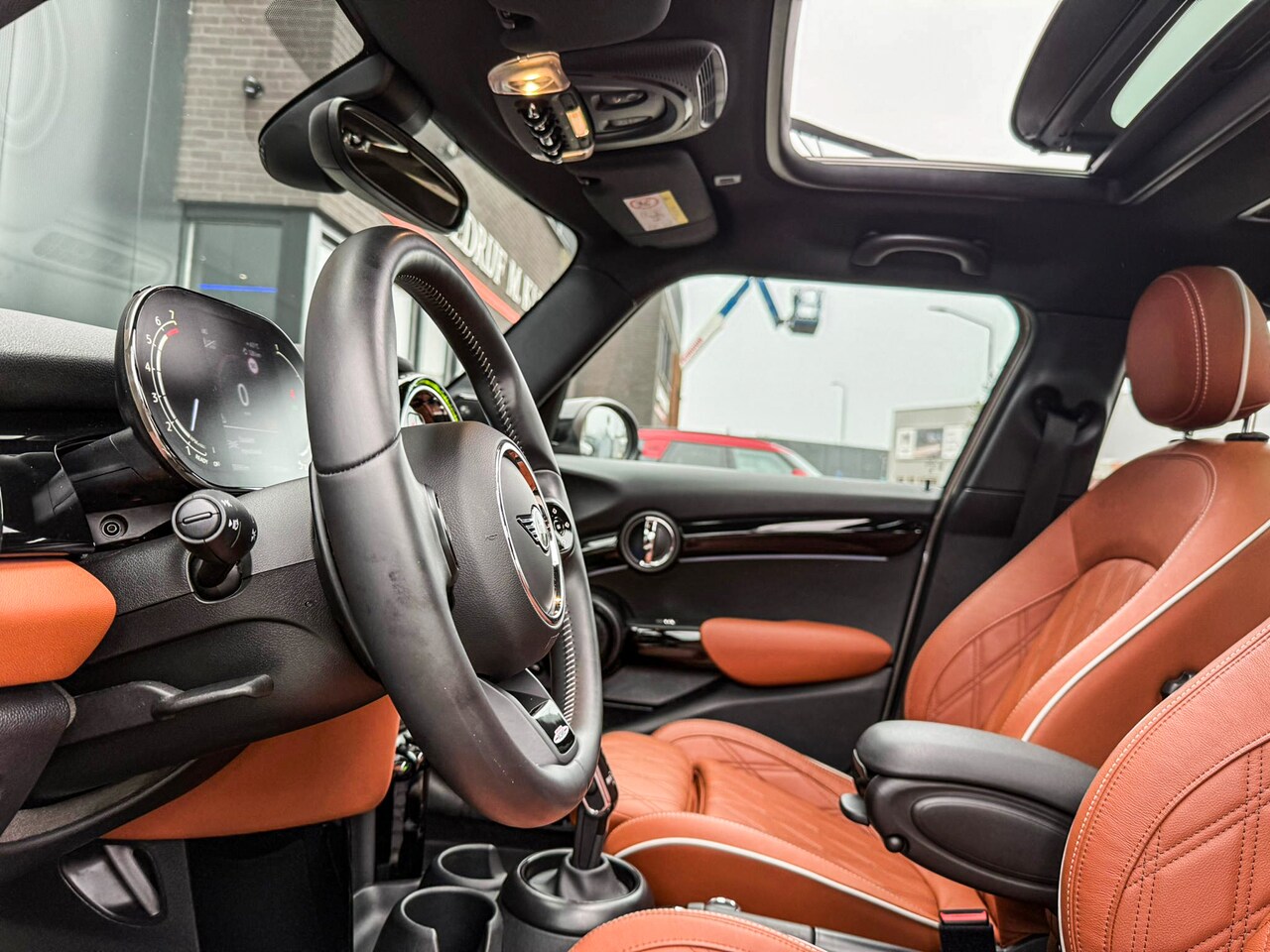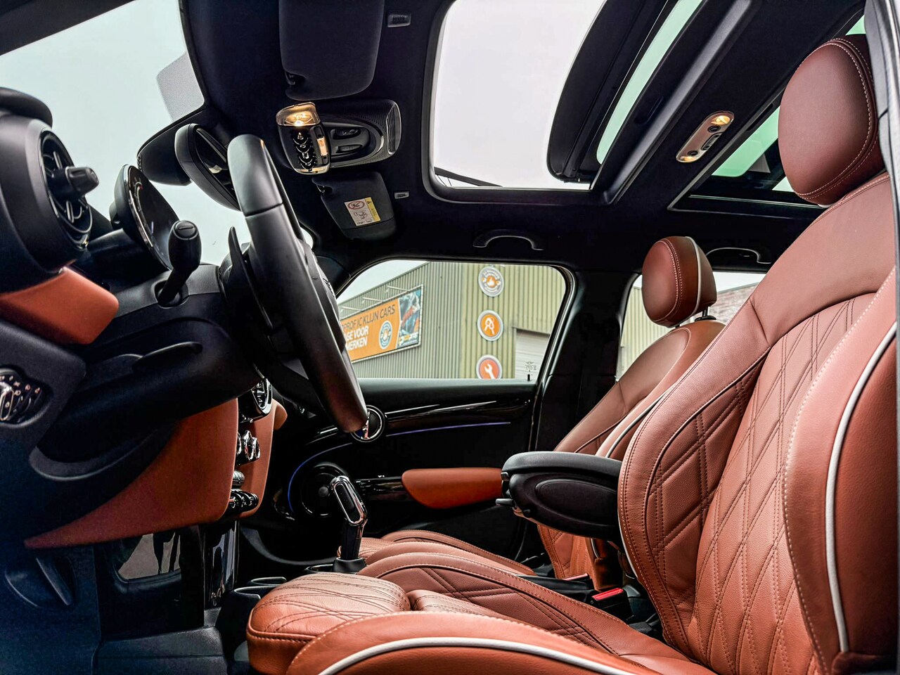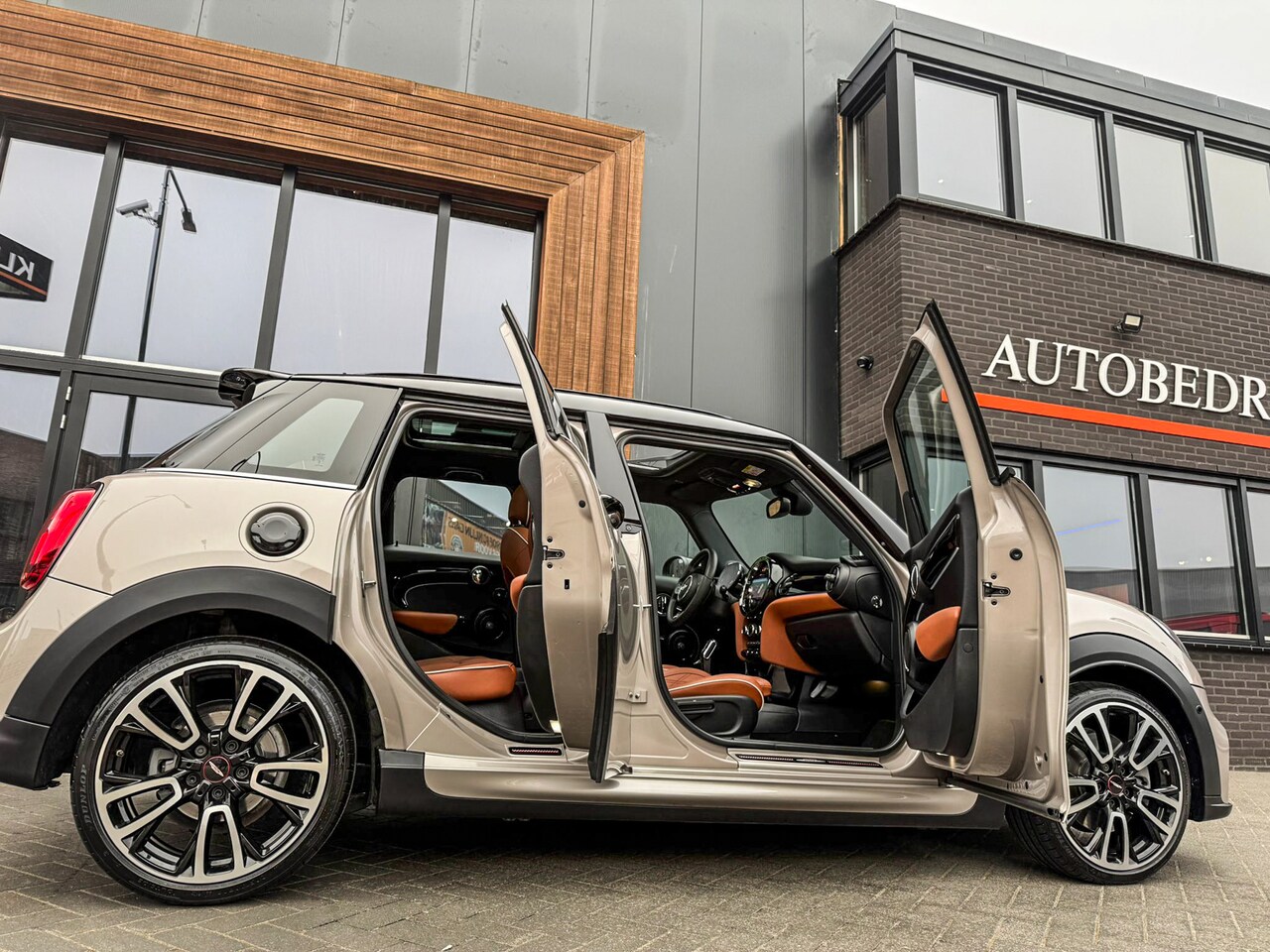 2.0 John Cooper Works F1 aut/Rooftopgrey/Chester leer brown/Pano/Camera/Vol