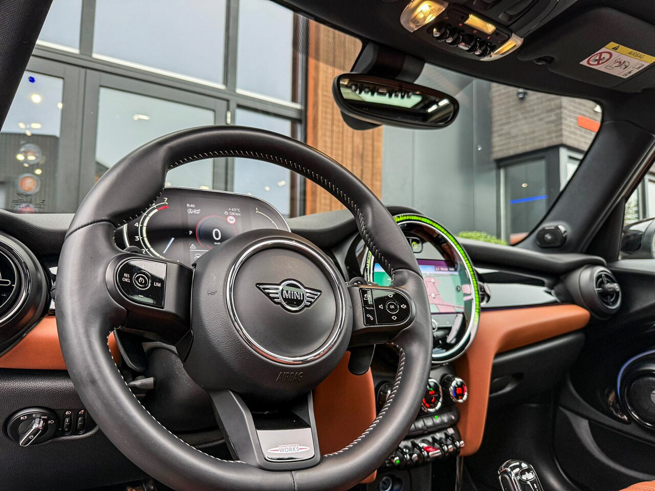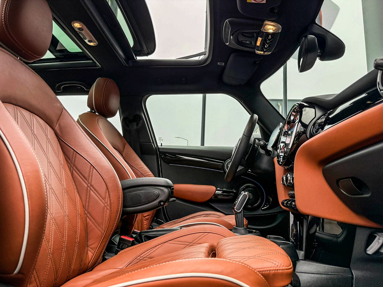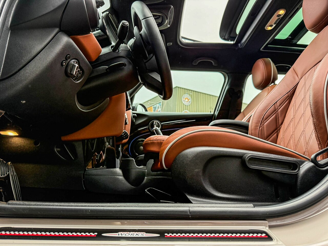 2.0 John Cooper Works F1 aut/Rooftopgrey/Chester leer brown/Pano/Camera/Vol
