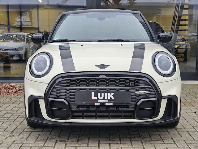Een prachtige uitvoering in de kleur pepper (old English) white met black optic. Het complete John Cooper Works Trim pakket én JCW interieur, glazen panoramadak, LED koplampen en achterlichten, originele JCW velgen, privacy glas, vollederen bekleding met sportstoelen, stoelverwarming, elektrisch verwarmbare voorruit, parkeersensoren, navigatie, Apple carplay, automatische airco, zwarte hemelbekleding, keyless start, audio systeem MINI Visual Boost (incl. LC display), etc.!