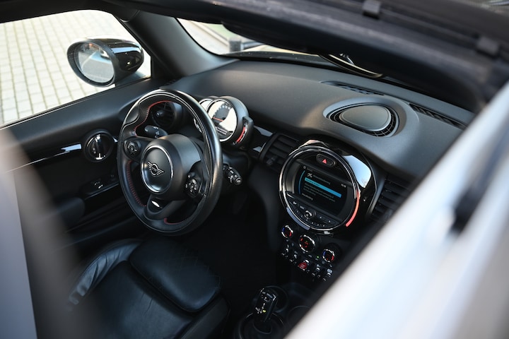 Het in dashboard opgenomen navigatiesysteem en het audiosysteem (met DAB-ontvangst!) bedient u met knoppen op het stuur. Geen parkeervak is te klein dankzij de assistentie van de parkeersensoren. Deze MINI Hatchback maakt het rijden graag gemakkelijk. Daarom verzorgt de regensensor de mate van ruitreiniging die de ruitenwissers moeten leveren bij neerslag. Met deze auto bent u ontspannen onderweg dankzij de cruise control. Met de sleutel op zak instappen en wegrijden. Keyless entry maakt het mogelijk. Ook is de MINI uitgerust met: automatisch dimmende binnenspiegel, isofix-aansluiting en boordcomputer.