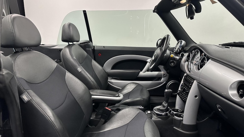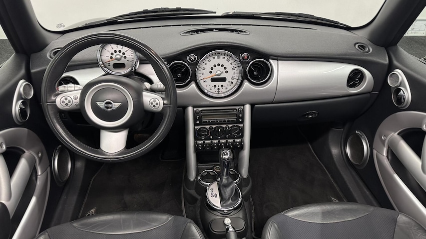 Alle technologie in de Mini Cabrio is er op gericht om uw rit veilig en gemakkelijk te laten verlopen. Dit mooie exemplaar uit 2006 heeft 165357 kilometer op de teller staan. De aandrijving komt voor rekening van een benzinemotor en een automatische transmissie. Mooi om te zien en heerlijk om in te zitten zijn de sportstoelen, die u onderweg optimale ondersteuning geven. De elektrische kapbediening is een technisch hoogstandje: het dak opent en sluit zonder dat u hoeft uit te stappen. Geniet van de lichtinval en het uitzicht van het grote glazen panoramadak. Bij de zeer complete uitrusting van deze auto behoren ook 16 inch lichtmetalen velgen, sportonderstel, halflederen bekleding, zwarte hemelbekleding en windscherm.