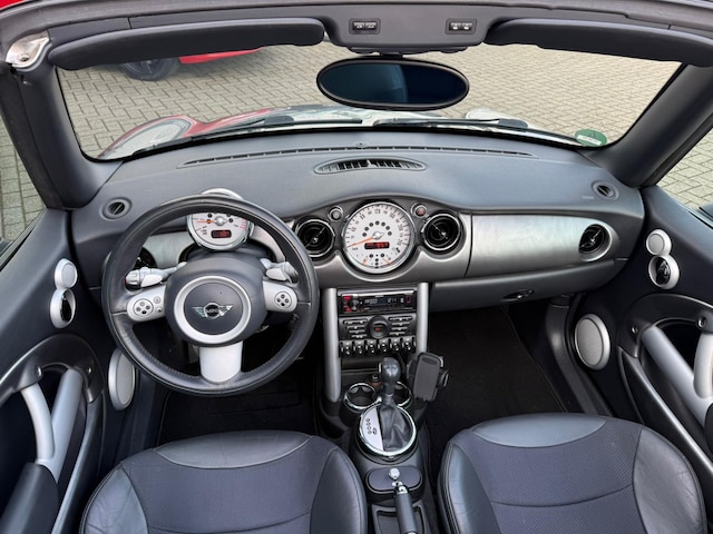 In zeer nette staat verkerende origineel Nederlands geleverde en perfect rijdende Mini Cabrio 1.6 Cooper S Automaat met half leder interieur, climate control, cruise control, mtf leder stuur, originele 17 inch lm velgen met zgan Bridgestone banden, park distance control, elec dakbediening, bi-xenon verlichting met koplampsproeiers, windscherm, nieuwe radio/cd/Bluetooth speler (origineel ook aanwezig), metallic lak, middenarmsteun, getint ww glas, boardcomputer, isofix, centrale vergrendeling op afstand, elec ramen voor en achter, stuurbekrachtiging, elec buitenspiegels, mistlampen voor, hoofdsteunen voor en achter, bumpers en spiegels in carrosseriekleur in hoogte verstelbare stoelen en stuur etc. Geen import maar gewoon origineel NL Auto met onderhoudsboekjes en NAP (nationale autopas) certificaat en 2 sleutels aanwezig. Distributie kettingset bij 171000 km nog vervangen (rekening aanwezig). Inruil en financiering mogelijk. Koopje voor deze prachtige en zeer complete Mini Cabriolet 1.6 Cooper S Automaat slechts 6850,- (All-in prijs wij berekenen geen afleveringskosten).