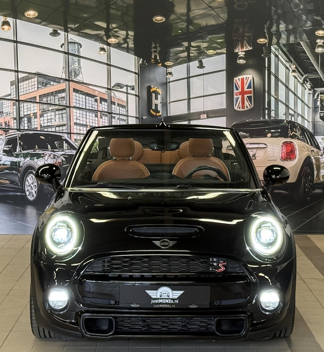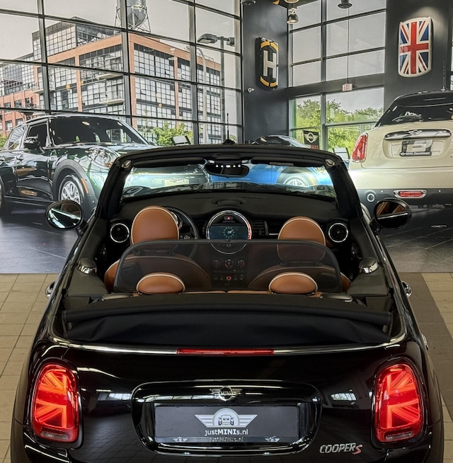 Zeer stoere en luxe uitgevoerde MINI COOPER S CABRIO 2.0 automaat 192 pk uit oktober 2018 van 1e eigenaresse. Dit betreft het facelift model, uitgevoerd in MIDNIGHT BLACK METALLIC metallic met een CHESTER malt-brown leder sport interieur. De MINI COOPER S CABRIO automaat verkeert in uitstekende staat. Extra fabrieksopties onder andere:
