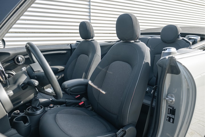 Het in dashboard opgenomen navigatiesysteem en het audiosysteem (met DAB-ontvangst!) bedient u met knoppen op het stuur. Parkeerplekken worden er niet ruimer op. Maar met de aanwezige parkeersensoren krijgt u deze MINI Cabrio zonder problemen op z'n plaats. Interval, normaal of high-speed? Bij iedere neerslag reageert de regensensor altijd op gepaste wijze! Nooit te snel, altijd constant: dat is het voordeel van de aanwezige cruise control. Natuurlijk heeft deze auto ook airconditioning.