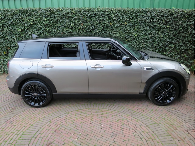 Nette, goed uitgevoerde Mini Clubman F54 1.5 Cooper F54 LCI in de kleurencombi Melting Silver metallic met een zwart dak, zwarte spiegelkappen, zwarte motorkapstrepen, zwarte 17" Net Spoke velgen en een half leder Black Pearl Carbon Black interieur met Carbon Black colourline en Hazy Grey interieurdelen. Deze Clubman is uitgerust met LED kop- en mistlampen, Union Jack achterlichten, parkeersensoren achter, extra getint glas achter, Keyless Entry, navigatiesysteem, armsteun voor, Lederen sportstuur met cruise control, climate control, Stoelverwarming, lichtpakket en een opbergpakket.