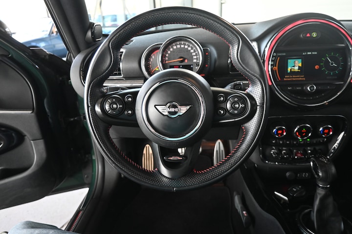 Met adaptive cruise control houdt deze auto automatisch afstand tot uw voorligger. Gespierd in het laag, soepel in het hoog: het Harman/Kardon audiosysteem levert een regelrechte sensatie van geluid! Met automatische airconditioning hoeft u alleen de gewenste temperatuur in te stellen. Het systeem doet de rest. Parkeerplekken worden er niet ruimer op. Maar met de aanwezige parkeersensoren krijgt u deze MINI Clubman zonder problemen op z'n plaats. Achter het stuur van deze MINI bent u niet alleen. De auto kijkt als het ware met u mee tijdens de rit. De regensensor schakelt de ruitenwissers in als het nodig is en de automatisch inschakelbare verlichting doet de lichten voor u aan. Ook Harman Kardon-audiosysteem, navigatiesysteem met harde schijf, DAB tuner, keyless entry en automatisch dimmende binnenspiegel zijn aan boord.