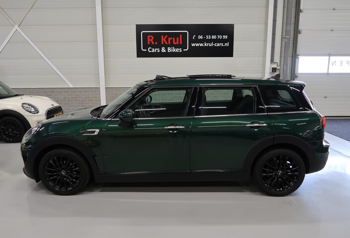 Van 2e eigenaar, Mini dealer onderhouden, prachtige en praktische Mini Clubman automaat in de kleur British Racing Green metallic met o.a. panoramadak, Harman en Kardon geluidssysteem, navigatie, bluetooth voor telefoon en muziek, app connect, stoelverwarming, cruise control, isofix, Ambiente interieurverlichting, 17 inch zwarte sportvelgen met 4 seizoenen banden en een multifunctioneel stuurwiel. Kijk op onze website voor alle 86 foto's. Laatste onderhoudsbeurt is uitgevoerd op 23-201-2025 bij 104383 km. Wordt geleverd met een nieuwe apk keuring.